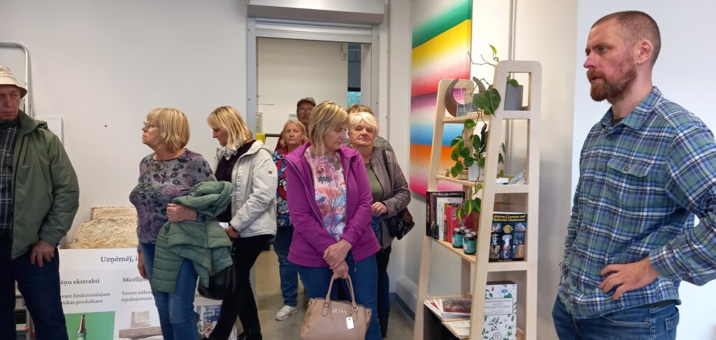 Apmeklējām Cēsu Radošo un digitālo kvartālu “Rainis”. Centrs kalpo biznesa attīstībai, tā mērķis ir attīstīt uzņēmējdarbībai nepieciešamo publisko infrastruktūru, veicināt inovācijas. Kopstrādes iespējas jaunu, komerciālu produktu un pakalpojumu veicināšanai dažādu nozaru uzņēmumos. Anete Rudmieze, uzņēmējdarbības atbalsta un inovāciju attīstības vadītāja, pastāstīja un parādīja uzņēmēju darba telpas. Visinteresantākais brauciena dalībniekiem likās apmeklēt darba telpu, kurā atrodas Sēņu laboratorija Spora – funkcionālo sēņu uzņēmums. Telpā atrodas siltumnīca, kurā tiek audzēta sēne Ežu dižadatene, laboratorijā tiek zinātniski pētīts tās bioloģiski aktīvo vielu saturs un labvēlīgā ietekme uz cilvēku veselību.