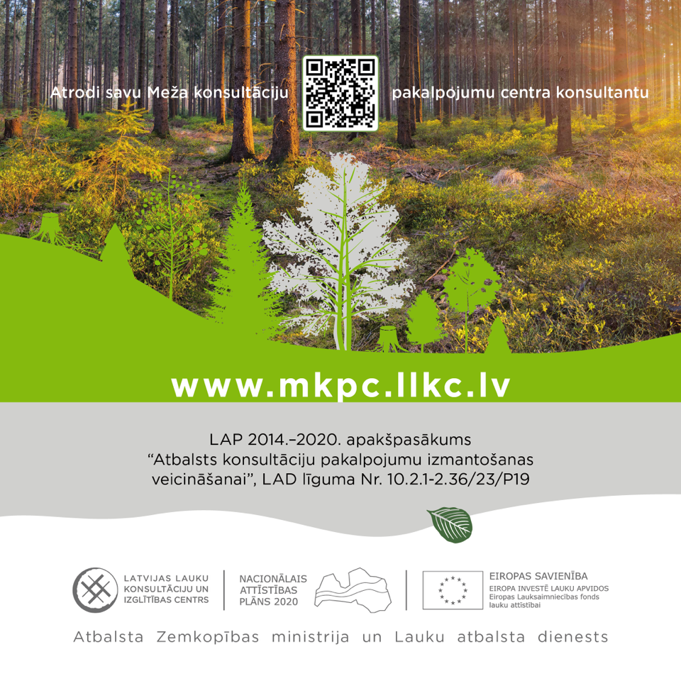 Plašāka informācija pieejama MKPC reģionālajās nodaļās, rakstot uz konsultacijas@mkpc.llkc.live vai zvanot Elīna Šķubure (MKPC mežsaimniecības projektu vadītāja), tālr.: 27812527, elina.skubure@mkpc.llkc.live.