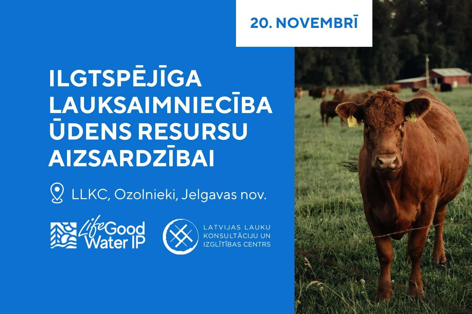 Aicinām lauksaimniekus, zemes īpašniekus un lauku konsultantus uz mācībām “Ilgtspējīga lauksaimniecība ūdens resursu aizsardzībai”. Mācības ir daļa no projekta LIFE GoodWater IP aktivitātēm un paredz kapacitātes celšanu un zināšanu papildināšanu par virszemes ūdens resursu ilgtspējīgu apsaimniekošanu.